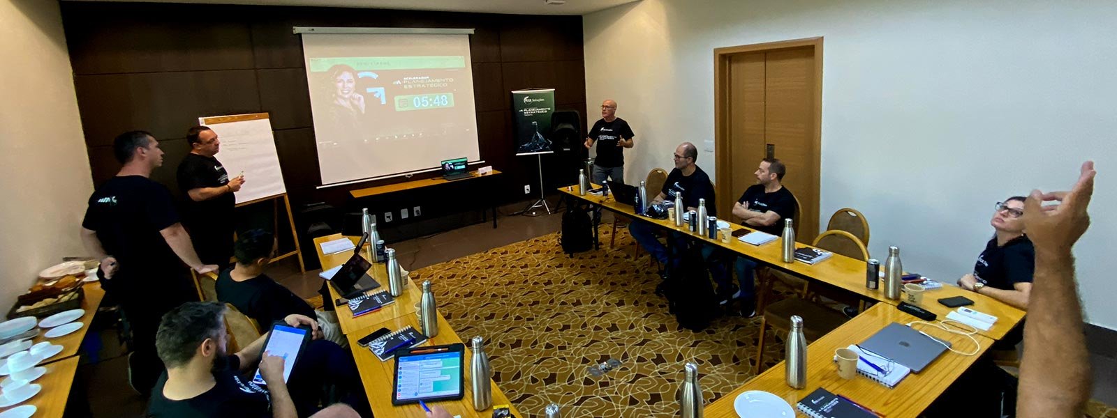 Os Heads da EGE Soluções, junto com a Diretoria Executiva, participaram recentemente de um treinamento de Planejamento Estratégico para o ano de 2024 ministrado pelo grupo Acelerador Empresarial, integrantes do grupo Giants.